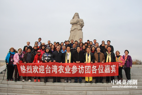 臺灣嘉賓與大陸同胞在炎帝像前合影(中國臺灣網 黃艷艷 攝)