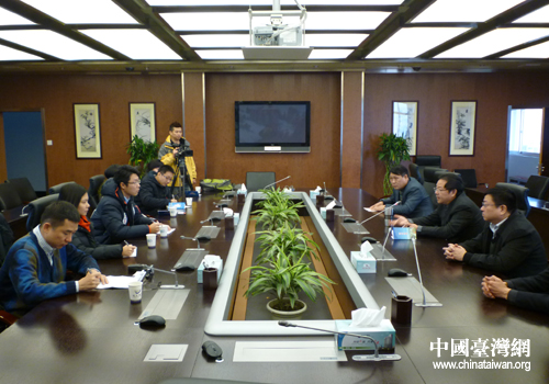 臺灣記者采訪淮北市長牛弩韜。(安徽省臺辦 裔淳 攝)