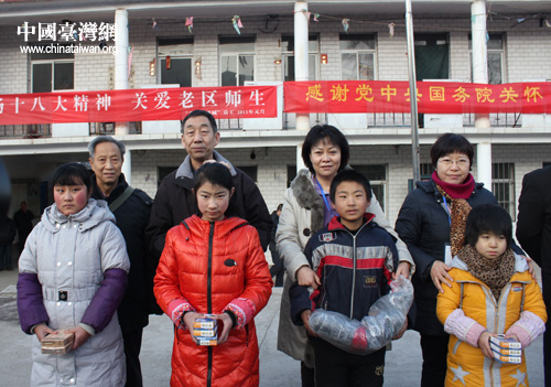 中國臺灣網(wǎng)1月6日消息 1月5日,“北京臺灣城”28名員工在董事長郭瑞先帶領(lǐng)下,冒著數(shù)九嚴寒從北京驅(qū)車到位于太行山深處的革命老區(qū)阜平縣,向該縣龍泉關(guān)鎮(zhèn)小學300余名師生贈送書刊、筆記本和手套,又到駱駝灣村為每家每戶送去了嶄新的棉被、圍巾等過冬物資。西柏坡精神研究會會長王彬生和毛澤東風范詞典副主編丁朝真共同參加。