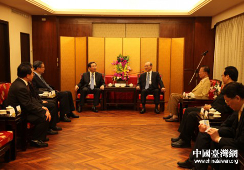 煙臺市委副書記趙強率煙臺交流團拜訪中國國民黨副主席林豐正。(圖片來源:煙臺市臺辦)