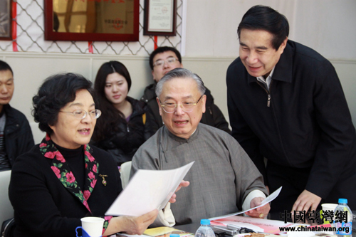 黃梅邨先生向林文漪、黃志賢展示他精心準備的新年禮物。(中國臺灣網 王怡然 攝)