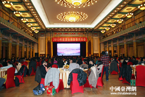 臺盟中央、全國臺聯今(25)日在京共同舉辦2013年在京臺胞新春同樂會。在京定居的臺胞代表、在京投資經商的臺灣企業界人士、在京求學的臺灣學生與首都各界300余人歡聚一堂,共敘親情、友情,喜迎新春佳節。(中國臺灣網 王怡然 攝)