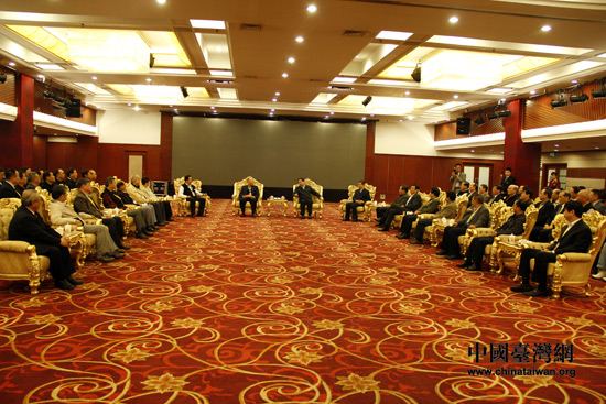 4月10日下午,河南省政協(xié)主席葉冬松在鄭州會見了參加癸巳年黃帝故里拜祖大典的臺灣統(tǒng)派人士和退役將領(lǐng)參訪團(tuán)。(中國臺灣網(wǎng) 李丹 攝)