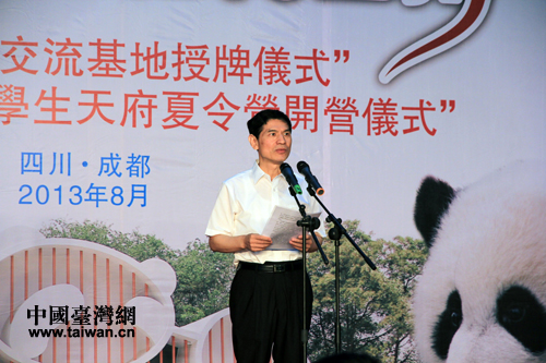 中國臺灣網(wǎng)8月8日成都消息 今日上午,“海峽兩岸交流基地”授牌儀式在成都大熊貓繁育基地正式舉行。中央臺辦、國臺辦副主任葉克冬,四川省委副書記柯尊平,四川省人民政府副省長黃彥蓉等出席。包括參加第四屆臺灣學(xué)生天府夏令營活動的川臺兩地師生在內(nèi),共130余人參加了授牌儀式。