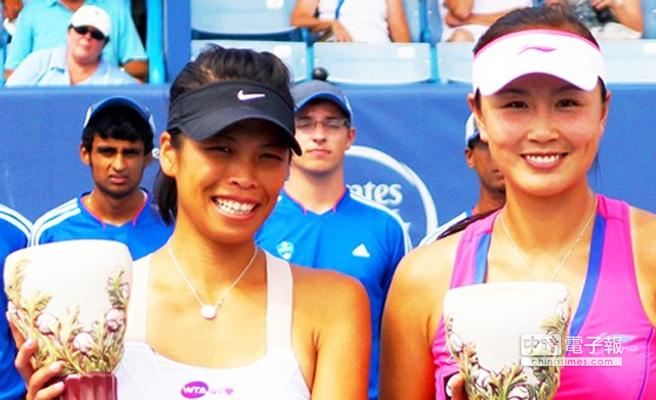 海峽組合謝淑薇、彭帥在辛辛那提網賽摘下女雙冠軍。圖片來源:臺灣《中國時報》
