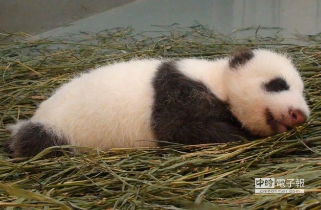 熊貓寶寶“圓仔”在臺風夜一點都不害怕,似乎在媽咪懷中做了個好夢。(圖片由臺北市立動物園提供)