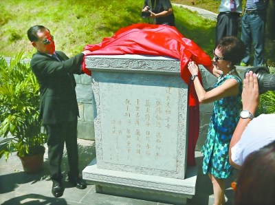 中國國民黨榮譽主席連戰和夫人在祭祖儀式上揭碑。記者李葳 攝