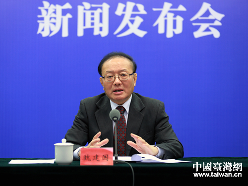 29日,兩岸企業家峰會組委會在北京舉行新聞發布會,組委會副主任、兩岸企業家峰會秘書長、中國國際經濟交流中心副理事長魏建國介紹了本屆峰會背景及籌備等情況。(中國臺灣網 王偉 攝)