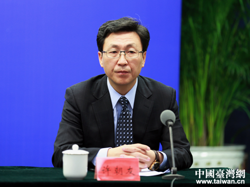 29日,兩岸企業家峰會組委會在北京舉行新聞發布會,組委會辦公室副主任、兩岸企業家峰會副秘書長、中國國際經濟交流中心交流部部長許朝友參加。(中國臺灣網 王偉 攝)