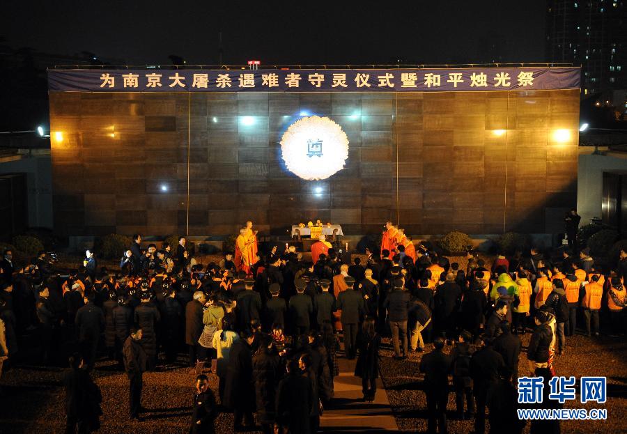 12月12日,各界人士參加“和平燭光祭”活動。當晚,侵華日軍南京大屠殺遇難同胞紀念館舉行“為南京大屠殺遇難者守靈儀式暨和平燭光祭”活動。南京市民和學生代表、中日韓三國僧侶及來自韓國、日本等國的國際友好人士在侵華日軍南京大屠殺遇難同胞紀念館祭場點燃3000支紅燭,為南京大屠殺遇難者守靈并祈禱世界和平。今年12月13日是南京大屠殺遇難同胞遇難76周年紀念日。新華社記者 孫參 攝