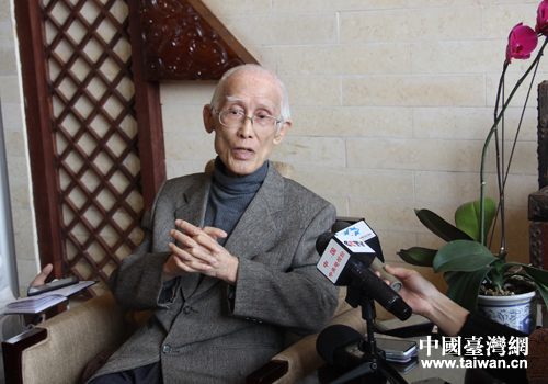 著名詩人余光中接受媒體采訪。(中國臺灣網 李瑞艷 攝)