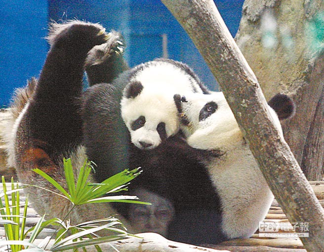在開館后過(guò)沒多久,媽媽圓圓緩緩走向一旁玩耍的圓仔,給它一個(gè)大大擁抱