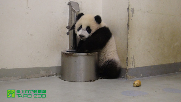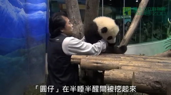 圓仔昨(6)日上午9時首次“上班”見客,撐了1個小時左右便呼呼大睡;直到下午5時10分下班,半夢半醒的圓仔被保育員抱走,揮揮小肥腿和大家說再見;氐綑谏幔瑘A仔伸展一下四肢,打個哈欠,便睡眼惺忪地去找“水盆君”。