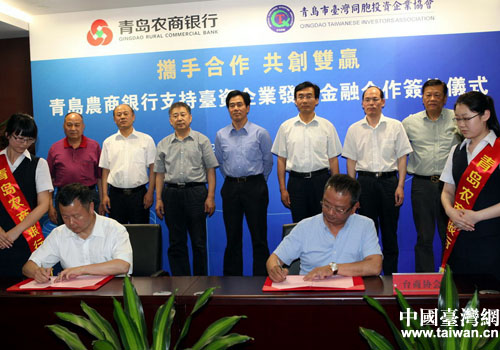 青島農(nóng)商銀行與青島市臺胞投資企業(yè)協(xié)會簽訂合作協(xié)議。