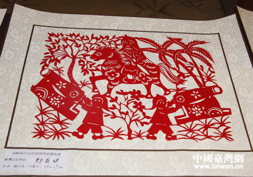 前門大街上年味濃濃的剪紙作品。(中國臺灣網 郭慶娜 攝)