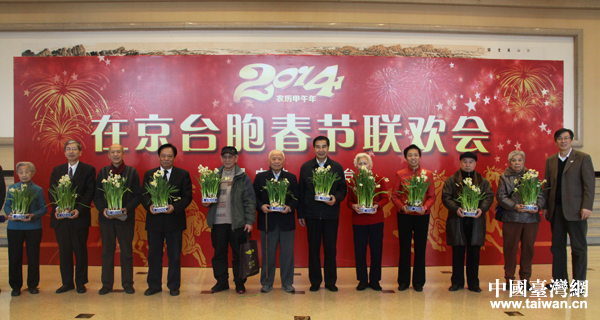 出席聯歡會的領導還特別向在京老臺胞贈送了極具閩南特色,代表思念、團員之意的漳州水仙。(中國臺灣網 楊永青 攝)