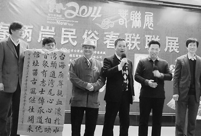 由北京市臺聯與得意典藏主辦的首屆“前門新春兩岸民俗春聯聯展”,近日在北京前門的臺灣會館啟動(見圖)。兩岸書法家一起創作書寫春聯,并在各家字號的門前展出臺灣老照片以及大陸藝術家赴臺采風剪紙,把前門商圈變成一座“活動的兩岸博物館”。系列活動一直持續到正月十五元宵節,市民可前往體驗欣賞。
