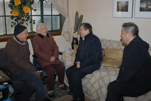 季平書記(左三)親切看望市臺聯顧問黃瑞霖、老臺胞張秀蓮夫婦