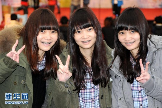 2月15日,三胞胎姊妹李依潺、李依潔、李依潤(從左至右)出席活動。當日,臺北市舉辦第二屆“雙胞胎幸?倓訂T”活動,415對雙胞胎和三胞胎家庭齊聚一堂,分享成長經驗。 新華社發(吳景騰 攝)