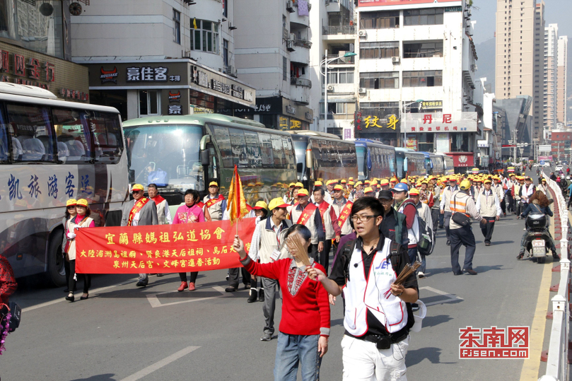 3月25日上午,晴空萬里,陽光明媚,臺灣宜蘭南方澳南天宮陳正男董事長率420人媽祖進香團來莆田文峰天后宮進香朝圣。