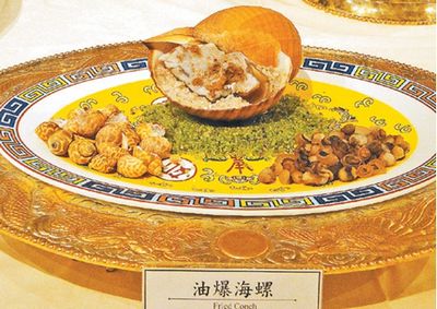 “海八珍”包括蟹肉燒海參、油爆海螺、一品鮑魚、煎烤海上鮮、羅漢龍蝦、紅燒魚翅、枸杞干貝、象拔虞琴等,件件令人食指大動,但,看得卻吃不得。