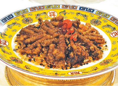 蘇義吉珍藏的“禽八珍”包括豉汁蒸鳳爪、百鳥朝鳳、龍鳳腿、鳳凰叭窩、烤鵪鶉,另有兩道類似“北京烤鴨”與“烤雞腿”,但未命名,留給觀眾更多想象空間。