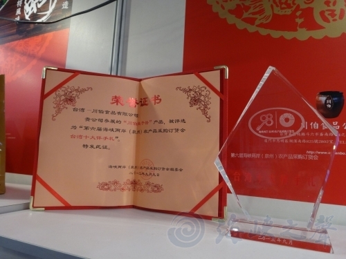 臺灣川伯本名劉新川,參加多屆海交會了,沒有一屆落下。川伯專做中國最美味的古早味“蔭豆豉”,他的“川伯萌豆豉”早已名揚海峽兩岸。川伯祖籍山東萊陽,父親是大陸人,母親是臺灣人。“正像我的父母一樣,現(xiàn)在大陸的新娘可以嫁到臺灣,臺灣新娘也可以嫁到大陸,兩岸早就是一家。”多年來往于兩岸,川伯深深體會到“兩岸一家親”,自己也像福州這邊的老顧客朋友們一樣,每年都期待再度的重逢,期待那一份朋友的情誼和兄弟般的親情互動。