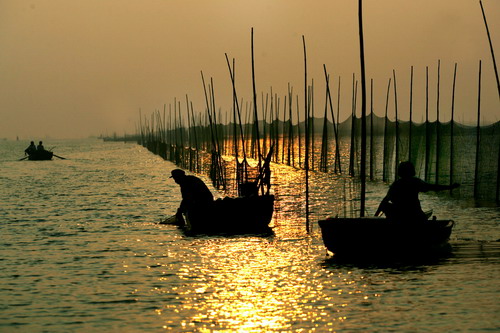 幾十年過(guò)去了,這座東西長(zhǎng)約2.5公里的村落,依 然夾在兩條運(yùn)河之間,與水依依相連。栗思懷感慨地說(shuō),過(guò)去侯遷閘的祖先是以在渡口擺渡為生,現(xiàn)在的南閘村村民雖然開始種地、打工,但是也有很多人仍然依靠 捕魚、依靠運(yùn)河生活。舊時(shí)商船每每經(jīng)過(guò)侯遷閘都會(huì)往兩岸扔銅錢,祈禱河神保佑平安。滿載貨物的大木船上掛起船帆,后邊拖著一只小舢板,纖夫們拉著長(zhǎng)纖,蹣 跚地行走在岸上,一邊走,一邊喊著號(hào)子。那號(hào)子是隨口編成的,高亢有力,充滿韻律,十分動(dòng)聽。侯遷閘的舊址就在運(yùn)河旁邊,如今早已變成田地,小時(shí)候在這里 玩耍,還經(jīng)常會(huì)挖出來(lái)銅錢。