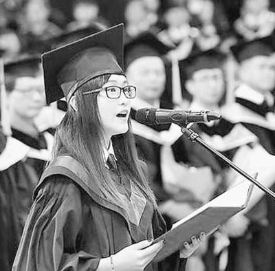 優秀陸生代表在畢業典禮上演講。資料圖片