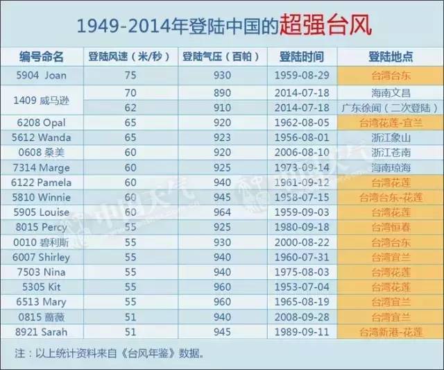 要說臺風的威力,不容小覷,這些年臺灣也著實幫福建擋了不少臺風。據統計,自1949年至2014年間,西北太平洋和南海上生成了385個超強臺風,其中能以“超強臺風”身份登錄中國的有17個。這其中,基本上有3/4的超強臺風去了臺灣。剩下的超強臺風,光顧了海南、浙江、廣東。同在沿海,福建就十分幸運。請注意,這個表上沒有福建的名字。