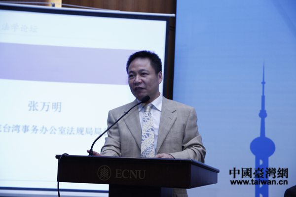 國(guó)務(wù)院臺(tái)灣事務(wù)辦公室法規(guī)局局長(zhǎng)張萬(wàn)明致辭。(中國(guó)臺(tái)灣網(wǎng) 尹賽楠 攝)