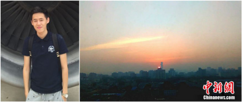 圖一:來自臺(tái)灣高雄的方學(xué)緯(左),8日清晨拍下他來中國(guó)農(nóng)業(yè)大學(xué)后的第一個(gè)日出(右),他說,看到日出有種大學(xué)新生活即將展開的感覺,所以順手拍下。(方學(xué)緯供圖)