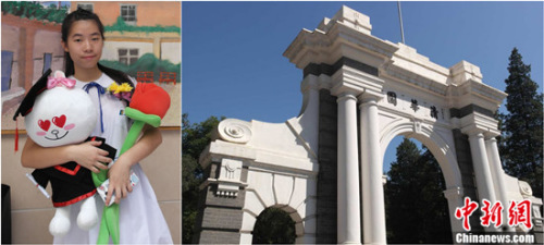 圖二:澳門女孩梁淑瑩(左)2013年曾參觀清華校園,對(duì)園內(nèi)建筑印象深刻,今年她正式成為清華建筑系學(xué)生,特意拍下清華二校門留念。