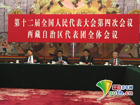 3月7日下午,全國人大西藏代表團(tuán)全體會議在人民大會堂召開,圖為全體會現(xiàn)場。中國青年網(wǎng)記者郭蕾 攝