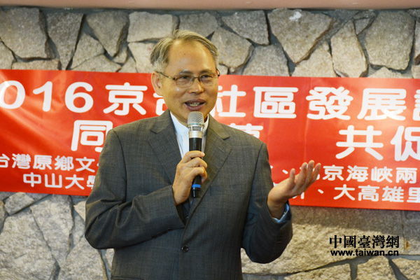 7日,2016京臺社區發展論壇新聞發布會在高雄中山大學舉行,北京海峽兩岸社區發展研究中心主任劉俊華出席發布會并發言。(中國臺灣網 朱煉 攝)