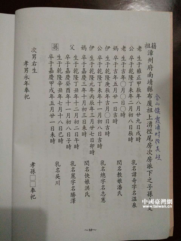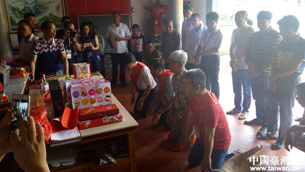 中國臺灣網6月14日廈門消息(記者 蕪同) 日前,從臺灣宜蘭縣赴廈門參加海峽論壇的陳世塤一行四人,跪在漳州南靖縣金山鎮霞涌村徑尾陳氏宗祠里,面對著祖宗牌位流下了眼淚。他們終于找到了自己家族的祖籍地,實現了幾代先人的期盼和囑托。