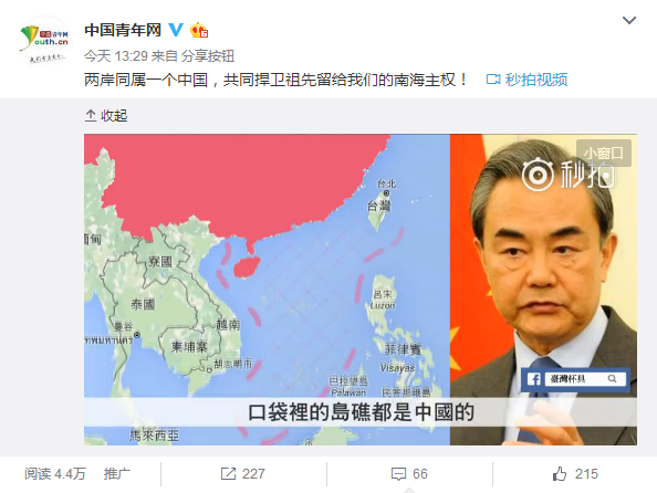 原標題:臺灣青年發布短視頻解讀南海主權 引大陸青年微博轉評贊