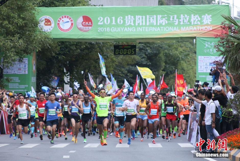 7月23日,貴陽(yáng)國(guó)際馬拉松賽正式開跑;同一天上午8點(diǎn),六盤水夏季國(guó)際馬拉松賽也鳴槍開跑。兩場(chǎng)國(guó)際馬拉松賽事同一天在貴州舉辦尚屬首次。兩地的馬拉松參賽名額全部報(bào)滿,貴陽(yáng)馬拉松2.5萬(wàn)人參加比賽,六盤水馬拉松2.6萬(wàn)人參加比賽,貴州同一天有5.1萬(wàn)人參與馬拉松比賽。圖為貴陽(yáng)馬拉松比賽鳴槍開跑。中新社記者 鄭春麗 攝