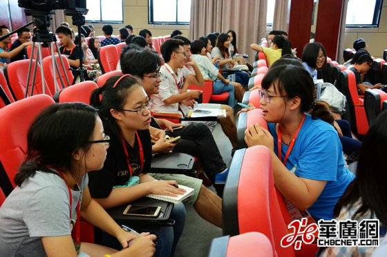 華廣網8月11日訊(記者 民生 嚴家鴻)8月10日上午,參加“青春創想秀”暨第四屆兩岸大學生公益社團活動策劃大賽的300多名選手齊聚福州外語外貿學院學術報告廳,參加由大賽組委會特別舉辦的首次海峽兩岸青年公益訓練營。在現場培訓導師的帶動下,兩岸大學生之間展開熱烈互動交流。