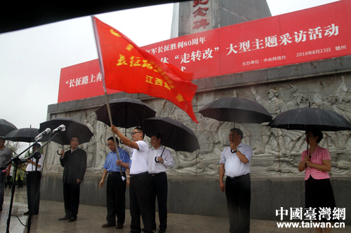 中國臺灣網8月23日江西于都訊(記者 李杰)1934年10月16日晚,中央紅軍渡過于都河,開始長征。82年后,“長征路上奔小康”網絡媒體“走轉改”大型主題采訪活動今天在江西省于都縣中央紅軍長征出發地紀念園正式啟動。