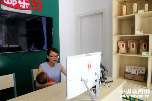 廖奶奶的孫媳婦、鳳崗村“農村e郵”服務站站長曾美玉在查看網店訂單情況。(中國臺灣網 李杰 攝)