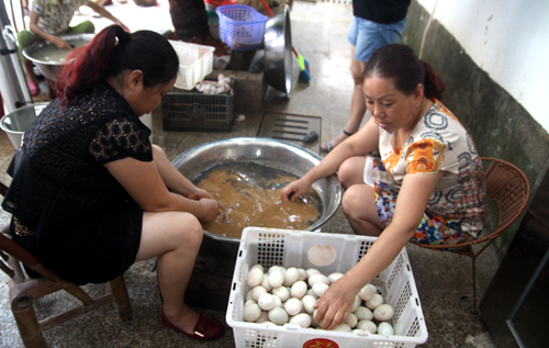 廖奶奶居住的村子山明水秀,生態環境綠色環保,出產的土鴨蛋色澤好,口味佳。廖奶奶有一手腌制咸鴨蛋的絕活,年輕時就經常賣咸鴨蛋貼補生計!澳菚r候擺攤要走到鎮上去,每天賣得好了能賣幾十只,一個月最多能賣幾百只,還不如現在一天賣的多!