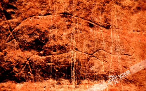 整塊巖畫以點成線的方式鑿刻,簡約的線條中透露出一種生命力和表現力。