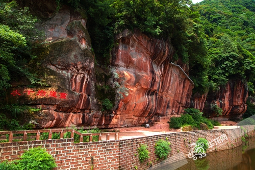 薄霧漸漸散去,崖壁上的樹林顯得愈發青翠,一彎流水從崖壁邊潺潺流過,一靜一動,遙相呼應。遠看,丹霞峭壁恰似一塊赤色石牌,嵌印在翠林碧水中。崖壁上,一塊刻制了牛、羊等十余種動物圖像的摩崖壁畫因悠久的歷史和文化價值引人注目。據了解,這塊位于重慶市江津四面山的灰千巖摩崖壁畫的歷史,因為年代久遠成謎,當地文管所專家考證其歷史或可追溯到漢唐以前。(首席記者 雷其霖 實習生 陳靜文)