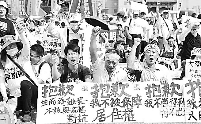 25日,“反迫遷團體”抗議民進黨不保障居住權。