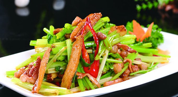 這是一道很親切的家常菜,臺灣的客家餐館都吃得到?图胰俗匀徊粫炎约疫@道專屬的菜肴叫“客家小炒”,而且南北稱謂不同,南部客家人稱“炒魷魚”,北部客家人則喚“炒肉”或“小炒”,自然以豬肉為主角。后來客家小炒逐漸演變,各家飯店根據口味選擇性地添加豆腐干、芹菜、辣椒、蒜苗、九層塔、蝦米等,展現不同的風貌。