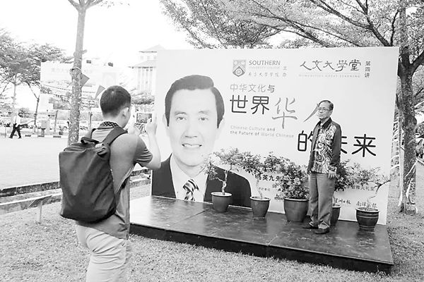 11月15日晚上8時,馬英九在馬來西亞新山市南方大學學院發表演講,演講題目是《中華文化與世界華人的未來》。南方大學學院是馬來西亞華人社會第一所民辦高等學府,此次馬英九是作為南方大學學院“人文大學堂”第四講的主講人發表演說。