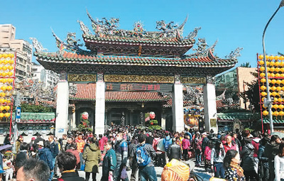龍山寺在臺灣的地位可與臺北故宮、中正紀念堂并列,于清乾隆年間修建,在歷史上這里不僅是信仰中心,也曾是議事、訴訟的地方。中法戰爭時,臺灣人民以此地為“司令部”,擊退來犯法軍,獲光緒皇帝頒賜“慈暉遠蔭”匾額。龍山寺有許多傳說,比如戰火中觀音端坐蓮臺,寶相無損分毫,臺北人每遇災難都去寺里躲避,往往有驚無險。
