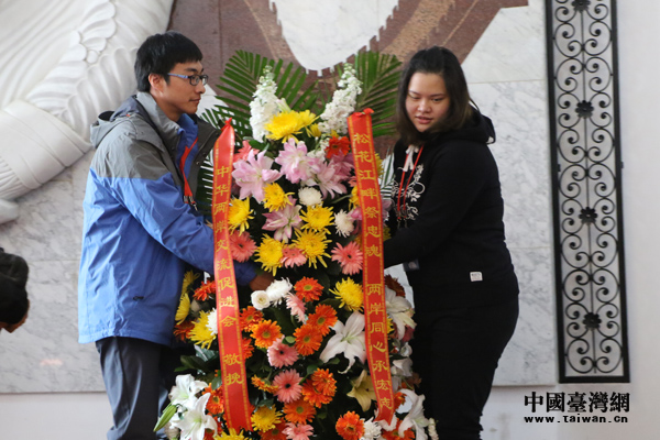 大學(xué)生敬獻(xiàn)花籃。(中國臺灣網(wǎng) 朱煉 攝)