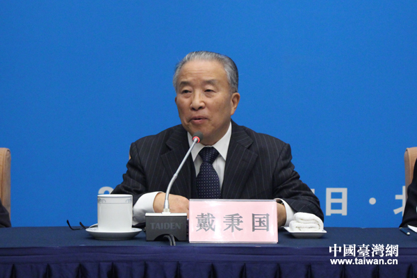 前國務委員戴秉國當選全國臺研會第七屆理事會會長,并在大會上致辭。(中國臺灣網 張潔 攝)